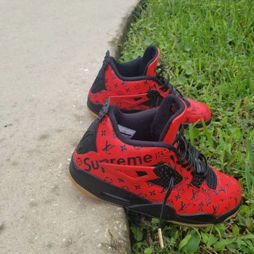 We recommend white leather sneakers, such as Nike AF1s, Leather Vans, Nike Dunks, Air Jordan 1s etc. Leather sneakers are the best canvas to work with for quicker dry times and the ability to erase mistakes. Canvas sneakers are also suitable but: have longer dry times & can't erase mistakes. NO suede or dirty sneakers please!
